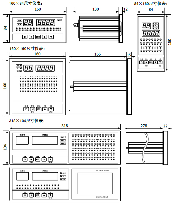 ¤ 顯示:2位LED通道號顯示,4位測量值顯示,顯示范圍:-1999~9999