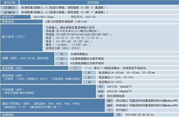 ¤ 可選:8報警,4變送輸出、通訊接口、運算結果顯示/報警/變送輸出、外供變送器電源