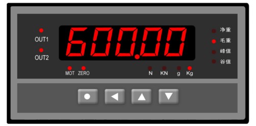 ¤ 指示燈定義:12個(gè)指示燈,報(bào)警1、報(bào)警2、穩(wěn)定、零點(diǎn)、總值、凈值、峰值、谷值、t、kg、g、kN