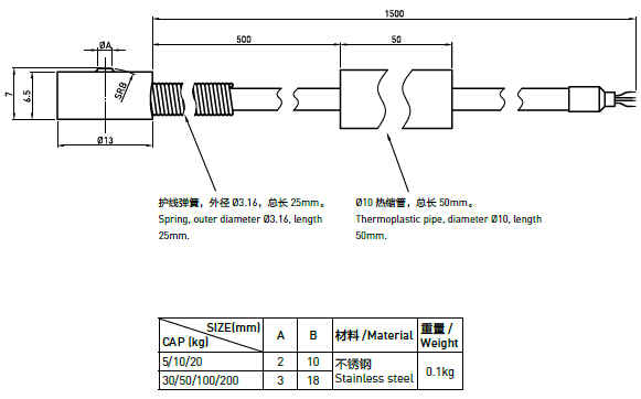 此款測力傳感器的尺寸很小且設(shè)計(jì)可靠,采用優(yōu)質(zhì)不銹鋼制成,受力方式簡單,易于使用。待測力作用于球狀觸面上,與測力傳感器中軸線垂直。由于其尺寸小,特別適合于安裝在對空間有較高要求的特殊結(jié)構(gòu)且需要測量壓力的地方。