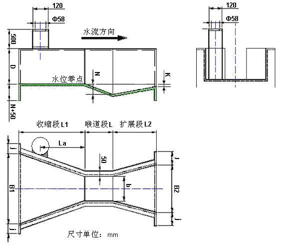 2. 巴歇爾槽的中心線要與渠道的中心線重合,使水流進(jìn)入巴歇爾槽不出現(xiàn)偏流。