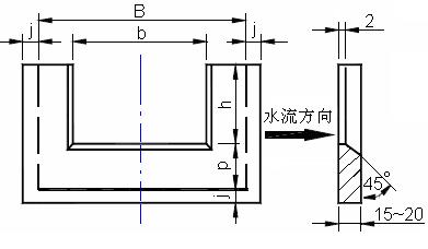 ◇ j為堰板嵌入渠道墻的部分,尺寸請用戶根據(jù)現(xiàn)場情況而定。