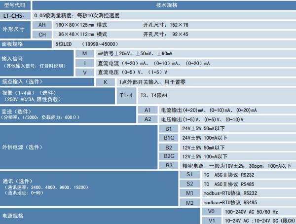 LT-CH5力值顯示儀五位數(shù)碼管顯示,可與各種稱重測(cè)力傳感器配合使用,實(shí)現(xiàn)重量、力的測(cè)量、顯示、變送、記錄及報(bào)警控制等功能。帶面板清零、峰谷值保持功能;可以接入mV信號(hào)或模擬量信號(hào),并可對(duì)外供10V精密電源。(一臺(tái)儀表可接1-4臺(tái)稱重傳感器,進(jìn)行總重量測(cè)量顯示。)
