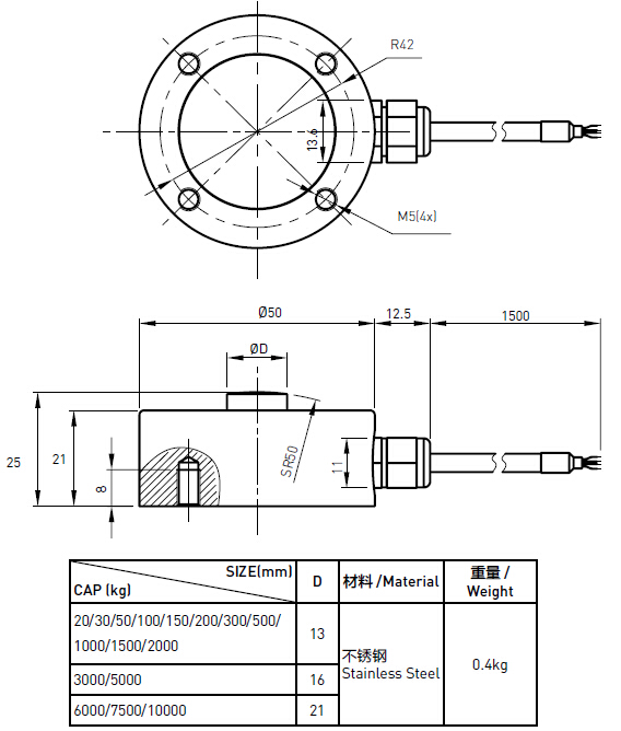 (量程:20,50,100,200,300,500,1000,2000,3000,5000,6000,7000,8000,10000kg)