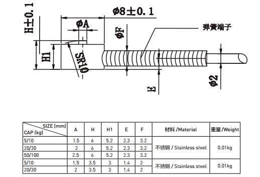此款測(cè)力傳感器的尺寸很小且設(shè)計(jì)可靠,采用優(yōu)質(zhì)不銹鋼制成,受力方式簡(jiǎn)單,易于使用。待測(cè)力作用于球狀觸面上,與測(cè)力傳感器中軸線垂直。由于其尺寸小,特別適合于安裝在對(duì)空間有較高要求的特殊結(jié)構(gòu)且需要測(cè)量壓力的地方。