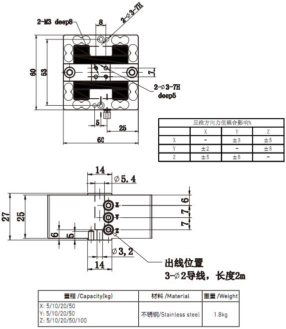 Fy: 信號+(藍) 信號- (黃); Fz: 信號+(棕) 信號- (灰) |